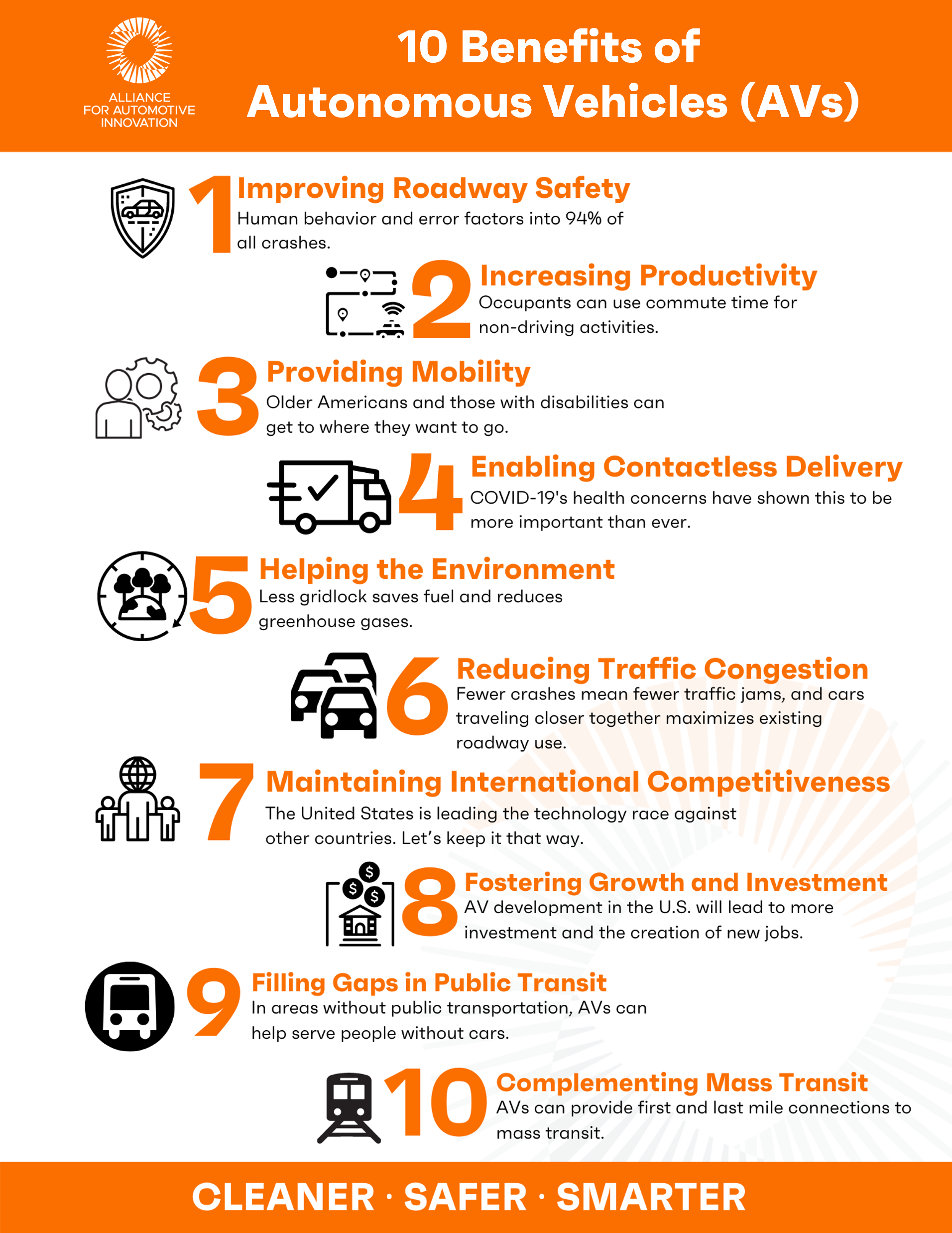 Investment & Economic Growth: AV development in the U.S. can lead to more investment and the creation of new jobs.