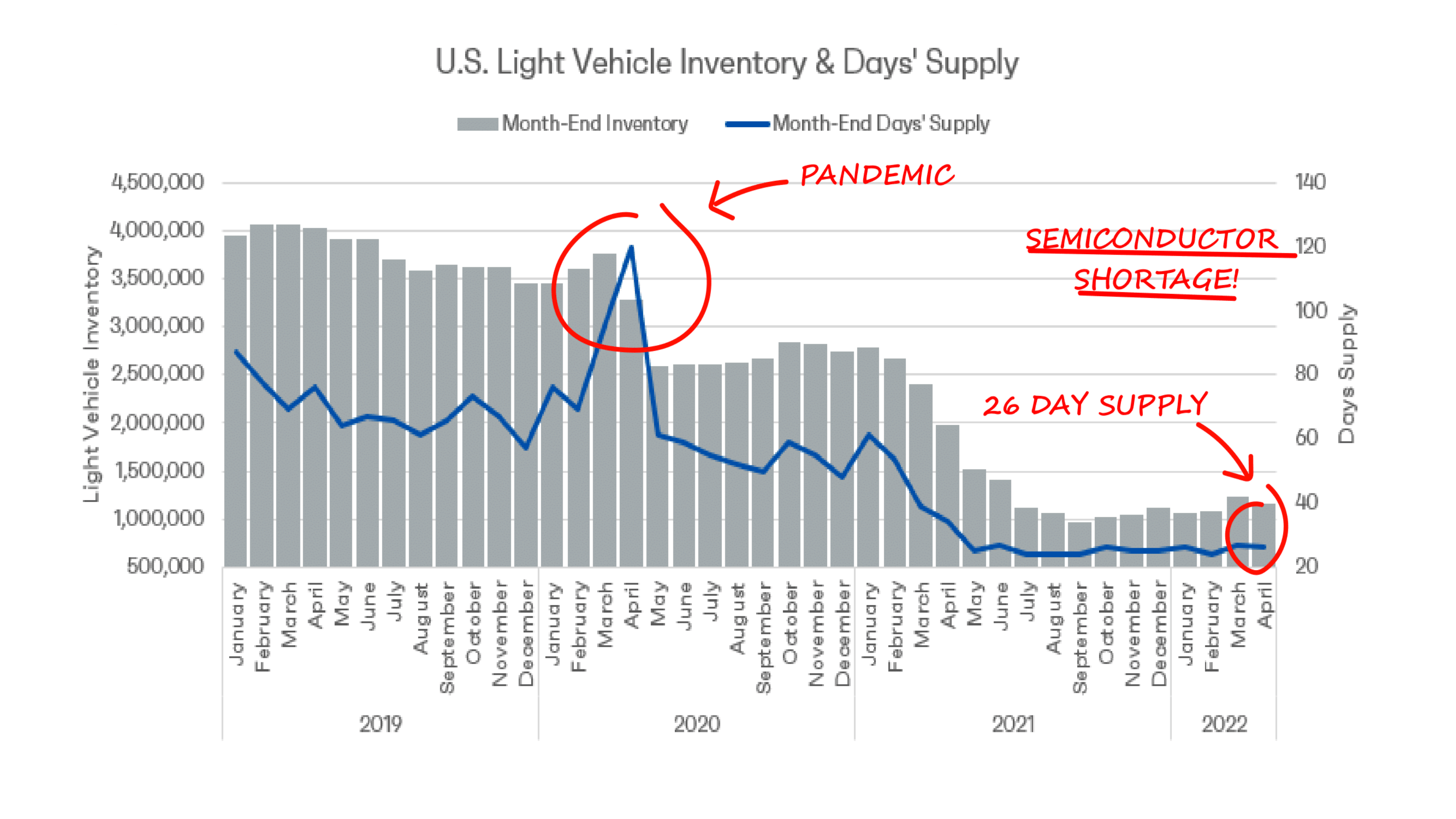 While auto production still lags pre-COVID production levels, we don’t know when – or if – another global disruption or additional supply chain challenges could happen. Let’s hope not.