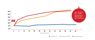 No matter the temperature, it’s never safe to leave a child unattended in an automobile. This graph demonstrates how quickly the temperature inside the vehicle may rise.
